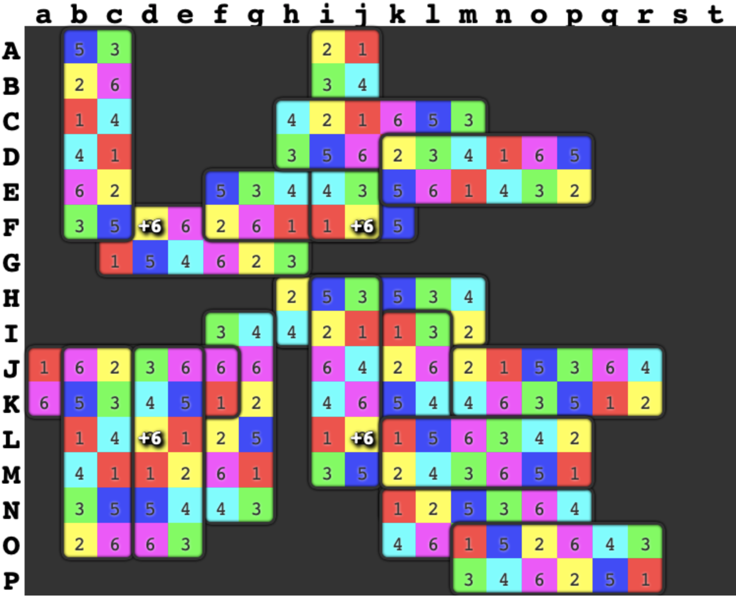 In the CodeCup it is played by two players on a 20x16 board on which 6x2 tiles must be placed in turn.